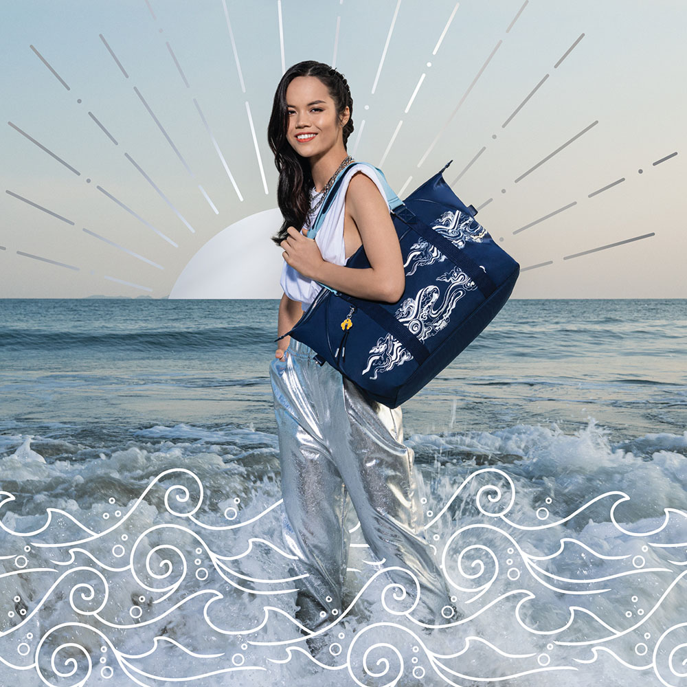 Kipling x 永樂宮聯名系列,以「瑞賀踏雲」為主題傳承東方文化底蘊,將典雅壁畫融合蛻變成東方獨特韻味的藝術品,讓你「袋」著遨遊。ART M為一款大型的尼龍旅行手提袋,兩側附有可調節拉鍊,能自由調整包型,適合周末小旅行、平日健身等各種休閒活動時背戴,並附有滑順的大拉鍊與實用的行李箱拉桿套,可輕易的套於任何行李箱拉桿上,輕鬆「袋」著走。