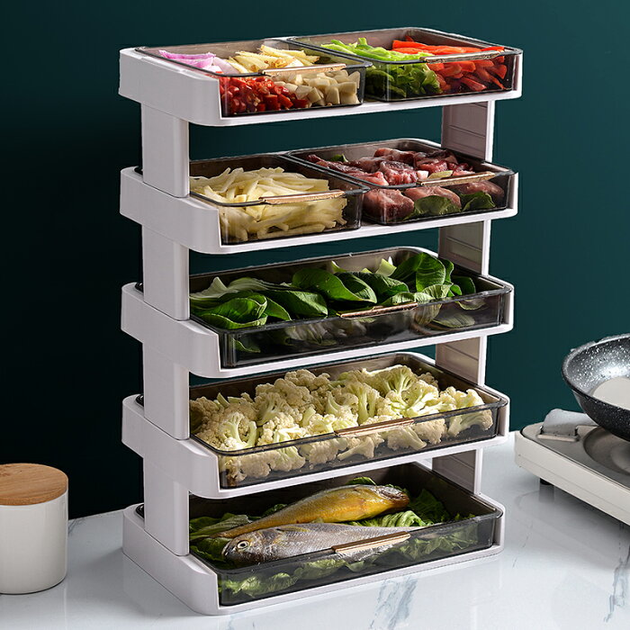 超省檯面空間推薦-7:多層透明可疊加抽屜式多功能備菜盤